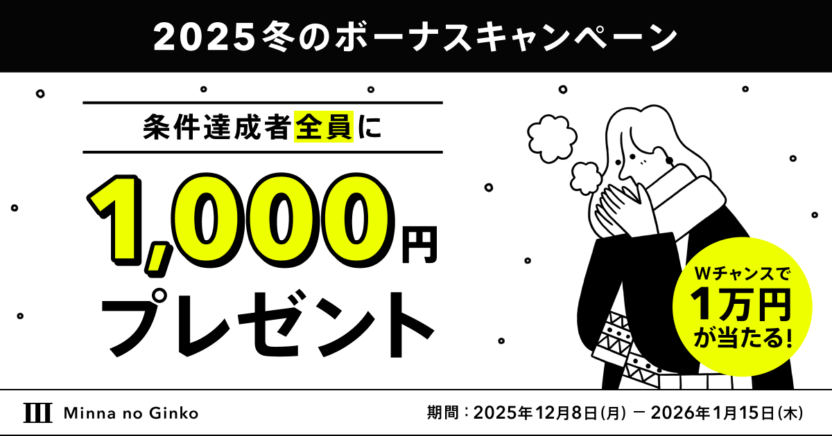 もれなくもらえる!2025冬のボーナスキャンペーン|みんなの銀行