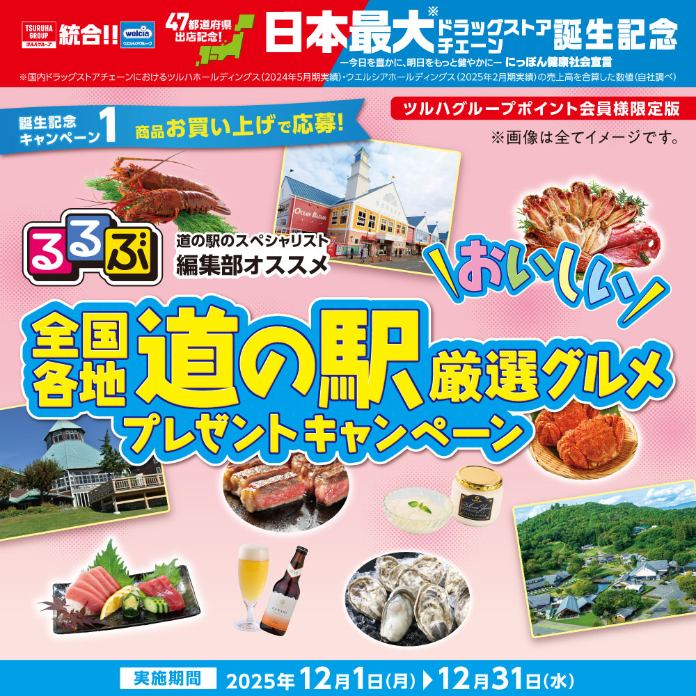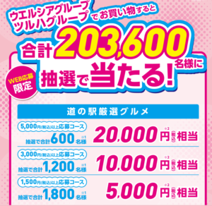 キャンペーン1 ツルハ・ウエルシア統合記念 るるぶ監修 道の駅厳選グルメプレゼント