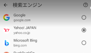 Android(Chrome):「︙」から設定をタップ→検索エンジン→Yahooを選択