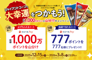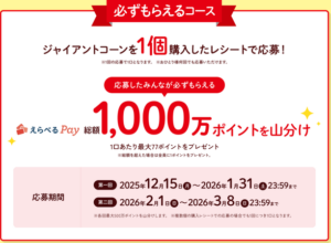 1個購入レシートで総額1,000万ポイント(各回500万ポイントずつ)を応募者全員で山分け。