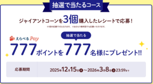 特典: 1口につき最大77ポイント(応募多数で総額を超えた場合は1ポイント)。