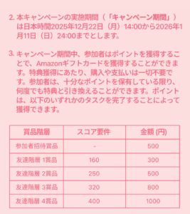 条件達成でAmazonギフト券最大1000円がもらえます。