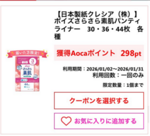 ポイズさらさら吸水肌ケア購入で298ポイントもらえます。