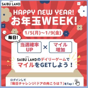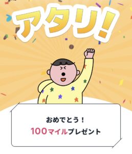 西部ガスのSAIBU LANDで100マイル(100円相当)が当たりやすいときいてやってみたら当たりました。
