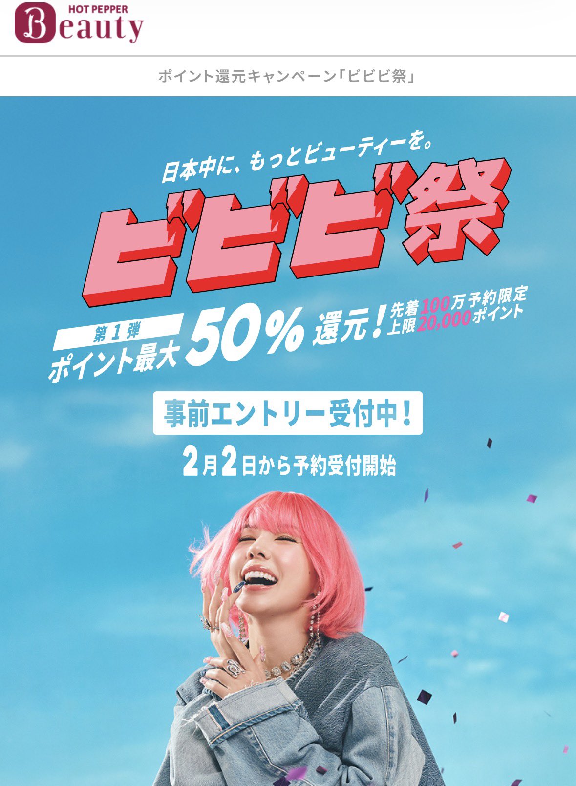 先着100万予約限定で、支払い金額の最大50%分・上限20,000ポイント還元されるお得なキャンペーンが2月2日(月)0時から始まります。