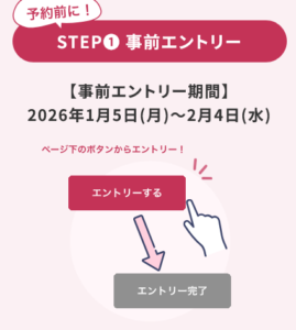 事前エントリー期間: 2026年1月5日(月) ~ 2月4日(水)
