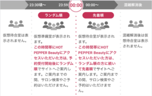 予約受付開始以降のサイト混雑状況によっては、その後さらに「仮想待合室」が表示されます。