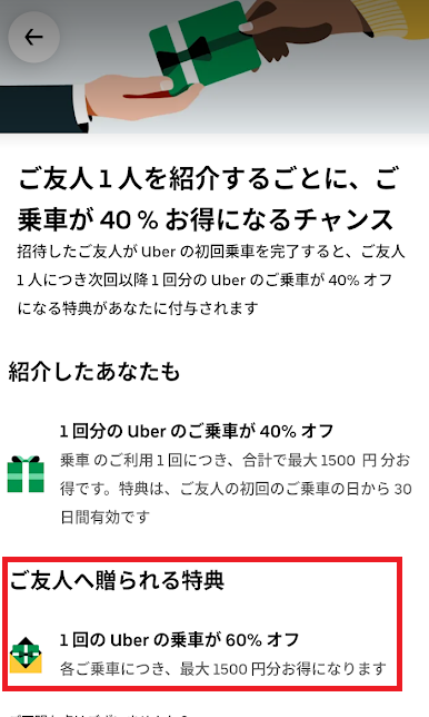 ウーバータクシーが初回 60%OFF(最大1500円分)お得になります