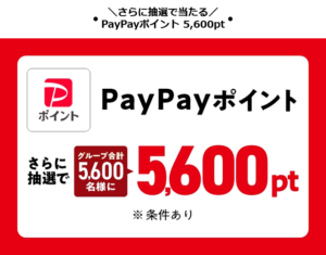 さらに抽選で「PayPayポイント5,600pt」が5,600名様に当たります。