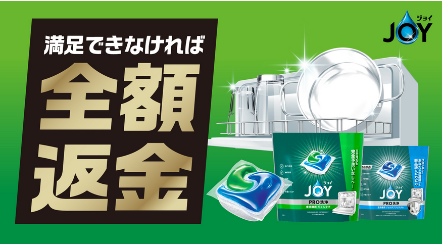 食洗機用洗剤のジョイジェルタブPROシリーズを使って、満足できなかった場合、全額返金キャンペーン