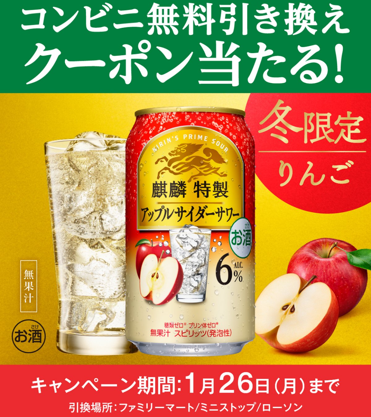 麒麟特製 アップルサイダーサワコンビニ無料クーポンが