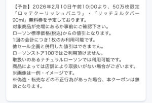 【 予告2/10】ローソンアプリでクーリッシュ・リッチミルクバー50万名にもらえる 「PR」 お得なアプリ X Facebook LINE コピー 2026.01.27 2/10(火) 10:00〜 ローソンアプリでアイス無料引換えクーポンが 50万枚配布予定です。 ロッテ クーリッシュバニラ/リッチミルクバー いつものマチカフェ同様で先着クーポンで取得さえすればキープできますように。 www.lawson.co.jp 1 Pocketローソンアプリ|ローソン研究所https://www.lawson.co.jp/lab/app/コンビニエンスストア「ローソン」の最新情報をお届けするローソン研究所ブログです