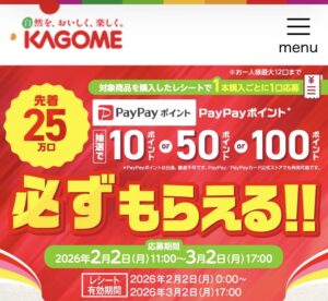 先着25万口限定でPayPayポイント10・50・100ポイントが必ずもらえます。
