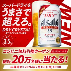 スーパードライクリスタル 20万名 ~2/16 10:00