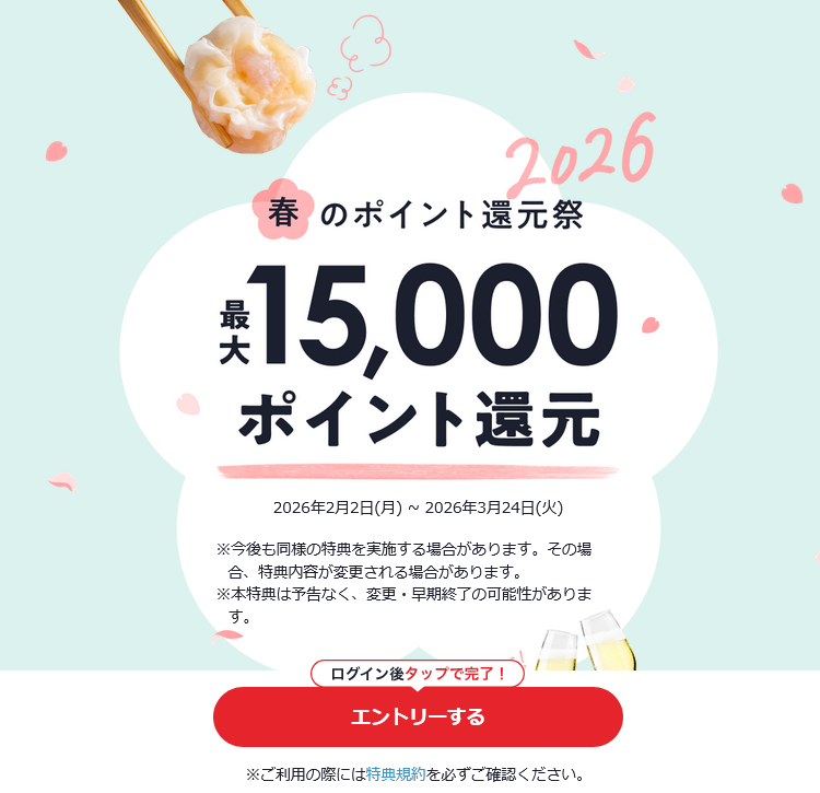 ディナーの場合、最大800ポイント還元対象店舗で2000円以上のコースを予約した場合