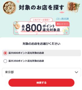 800ポイント・350ポイント還元店舗からお店を選びます。