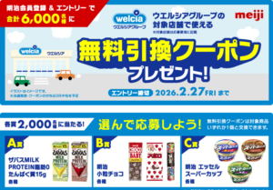 明治会員 ウェルシア無料引換クーポン が抽選で6000名に当たります。