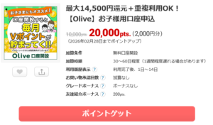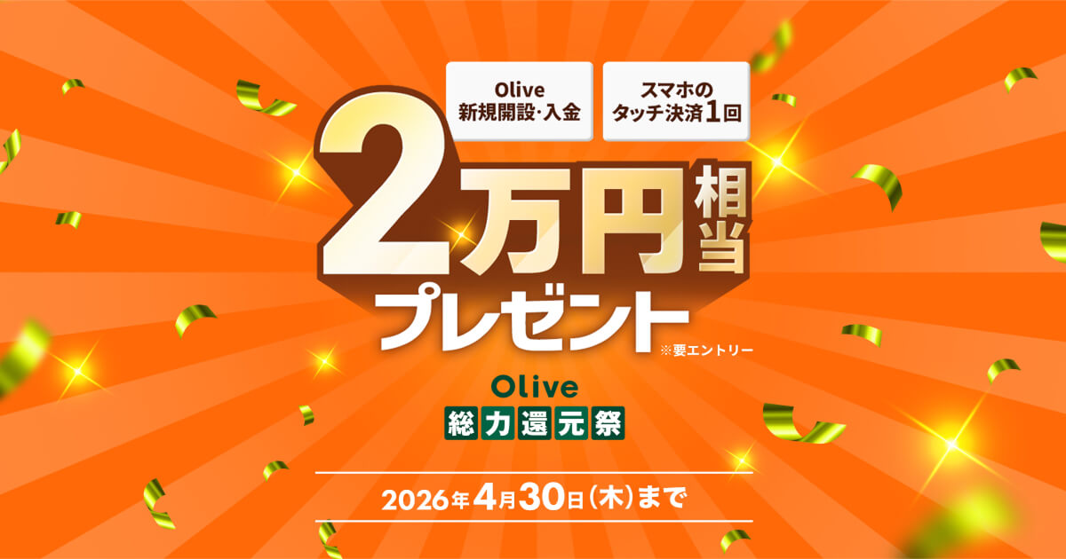 Olive新規口座開設&条件達成で2万円相当プレゼント!キャンペーン|Olive総力還元祭 : 三井住友銀行