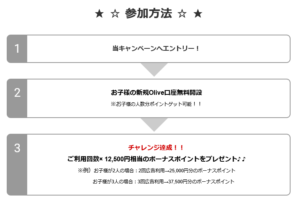 ECナビからOliveお子様用口座開設申込で14,500円分(2000円+12500円)相当ポイントがもらえます。お子さまの銀行口座を作るなら今がチャンス!!