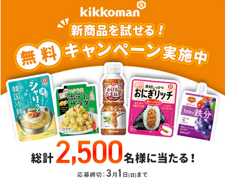 モニター情報キッコーマン 新商品モニターキャンペーン 総計2500名に当たります。