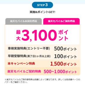 3月31日まで対象店舗で車検予約・実施で最大3,100ポイント!