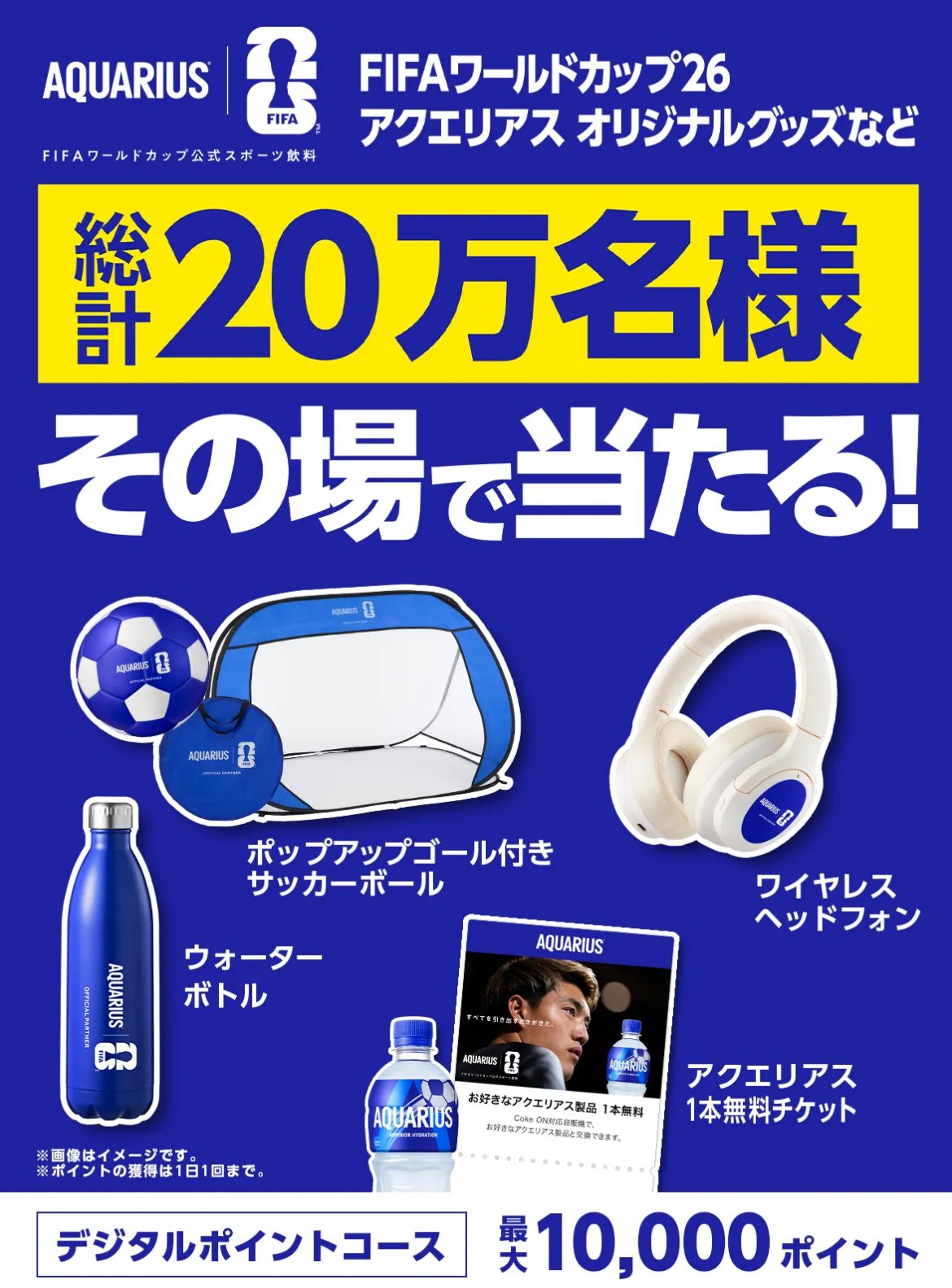 FIFAワールドカップ26 アクエリアス オリジナルグッズなど総計20万名様に当たる!