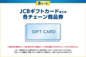 Bコース:JCBギフトカードまたは各チェーンで利用できる商品券(1,000円分・2000円分)