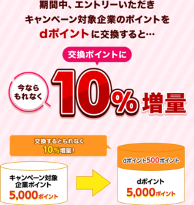 dポイントへの交換で10%増量!交換時期は3/1~31 要エントリー