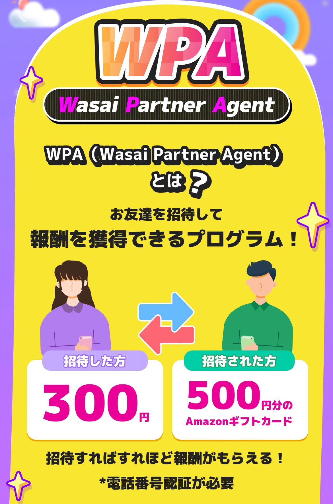 紹介経由登録&電話番号認証のみでアマギフ500円が即もらえます。