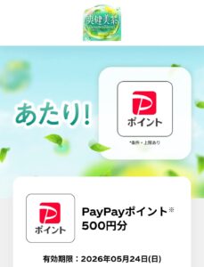 0:07にデジタルポイントコースでPayPayポイント500円分当たりました!
