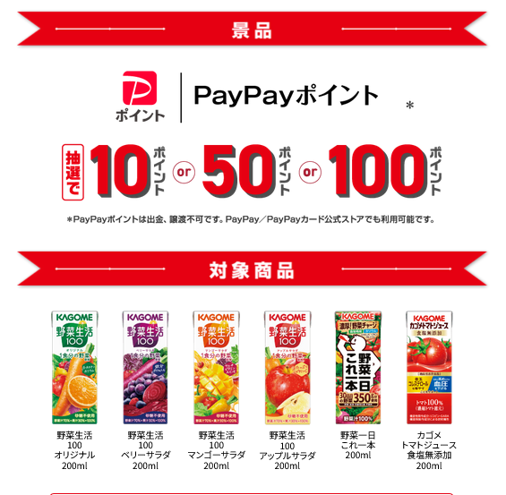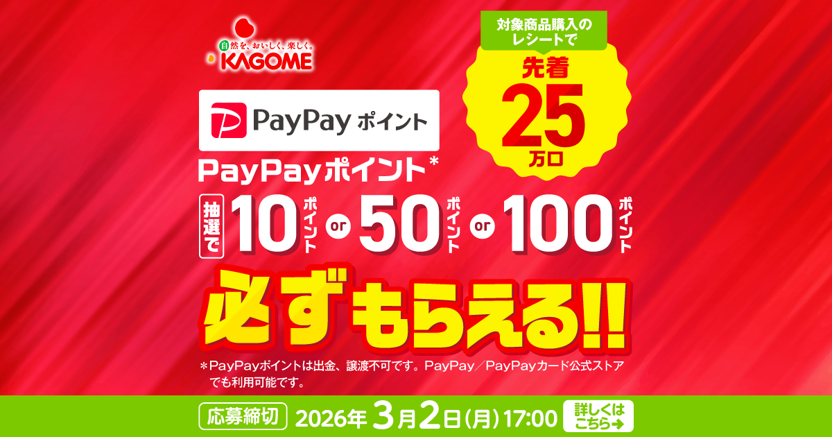 カゴメ 必ずもらえる!PayPayポイントプレゼントキャンペーン|カゴメ株式会社