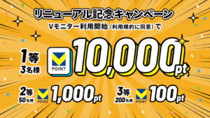 Vモニターリニューアルキャンペーン!利用開始だけでVポイントが抽選で当たる!さらに利用で30万ポイント山分け