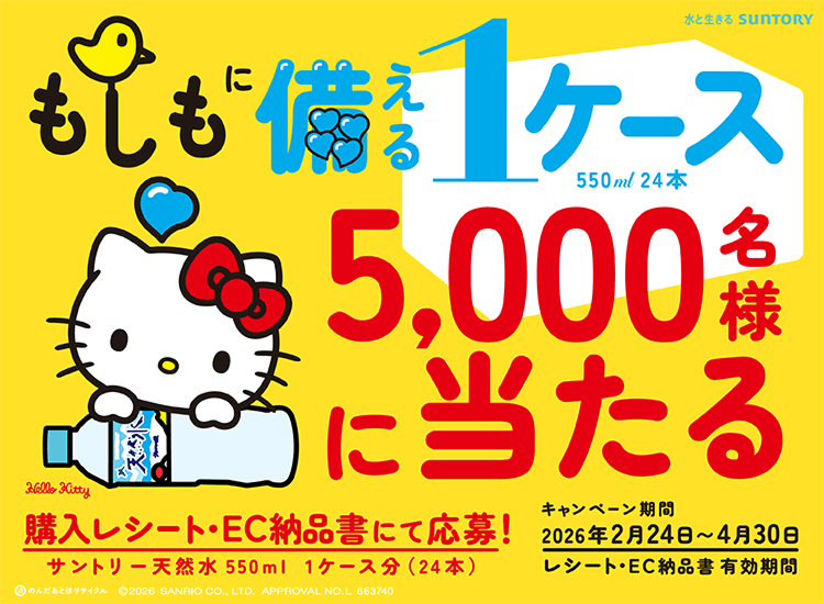 サントリー天然水1ケース(24本)購入で「もしもに備える1ケース」5,000名様に当たる