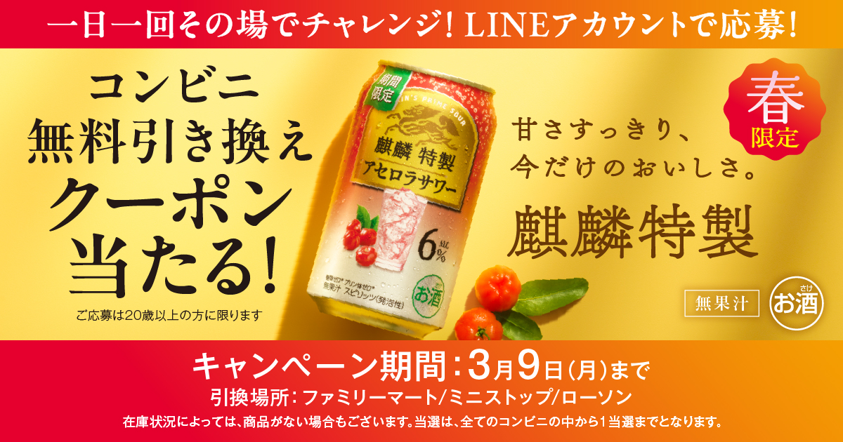 麒麟特製アセロラサワー 6.5万名 ~3/9