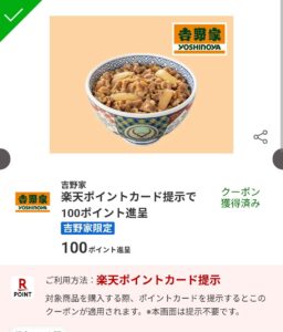 吉野家デジタルギフト500円 が50%OFFクーポンが配信されます。