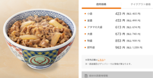 牛丼 小盛465円→385円