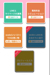 2.プロフィール登録で200マイル ←※個人情報の入力必要