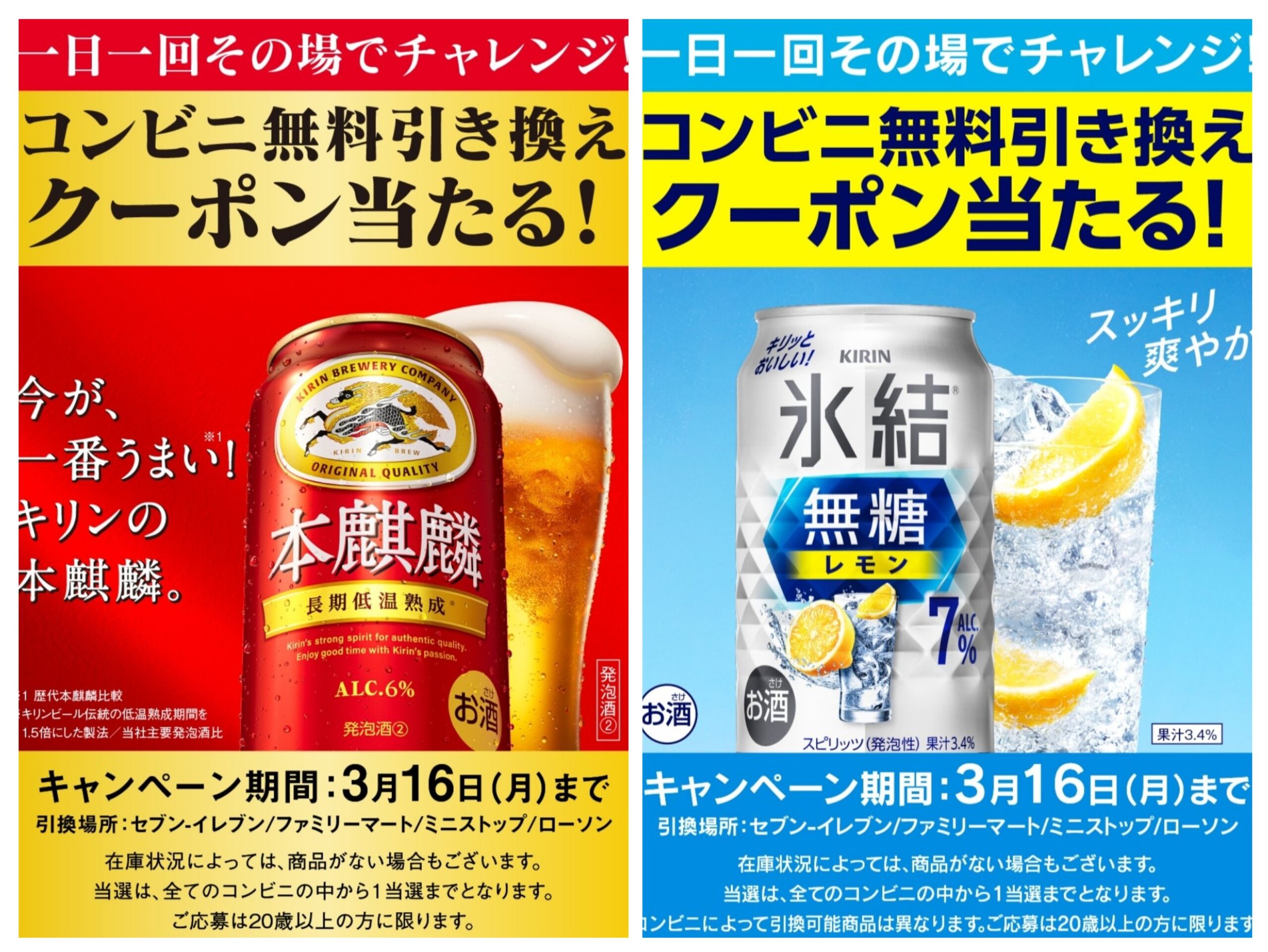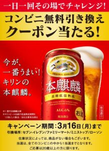 26年3月 本麒麟 コンビニ無料引き換えクーポンが当たる!キャンペーン