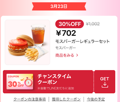 「モスバーガーレギュラーセット」30%OFFクーポン