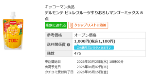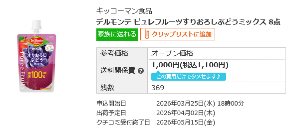デルモンテのピュレフルーツは果物そのまま100%すりおろしジュースなのでとても美味しいです。8個1100円は安いですよ。