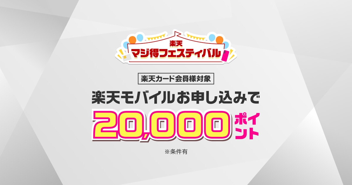 【楽天カード会員様対象】楽天モバイル初めてお申し込みで20,000ポイント