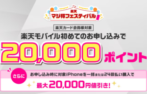 【楽天カード会員様対象】楽天モバイル初めてお申し込みで20,000ポイント