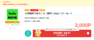 ※早期終了あり!※【即P】Hulu(フールー)の詳細 | ポイ活するならモッピー|ポイントサイトの副業で副収入・お小遣い稼ぎ