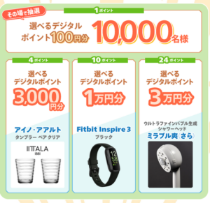 選べるデジタルポイント100円分」コースに限り、他のコースと重複して当選する可能性あり。