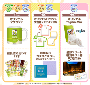 ポイントを貯めてお好きな賞品が抽選でもらえるキッコーマン豆乳まめレージ♪
