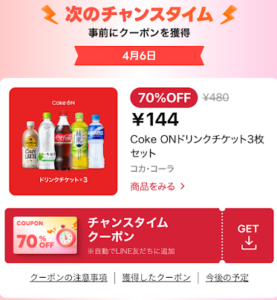 コークオンドリンクチケット3枚 70%OFFクーポン