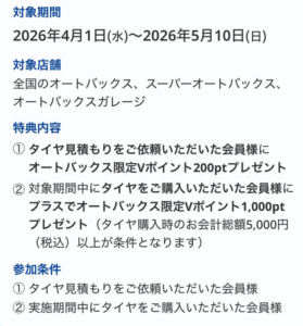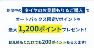 オートバックスでタイヤの見積りをすると、オートバックス限定Vポイント200ptもらえるキャンペーン