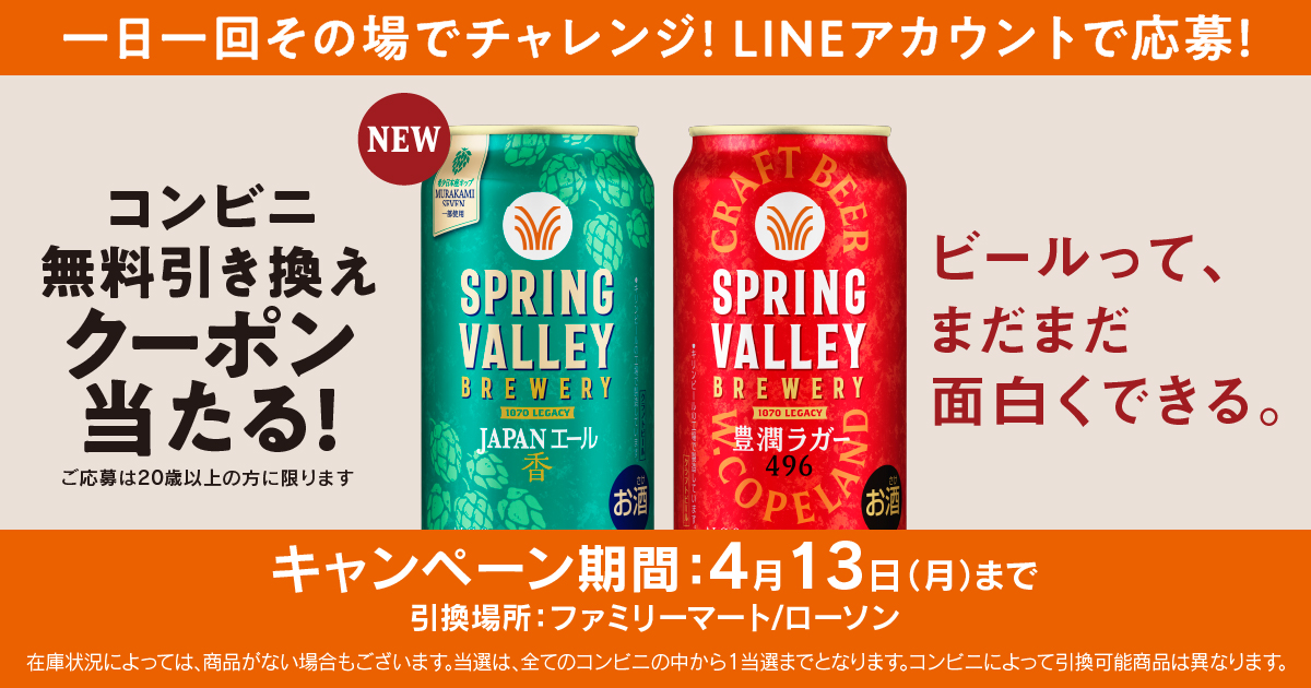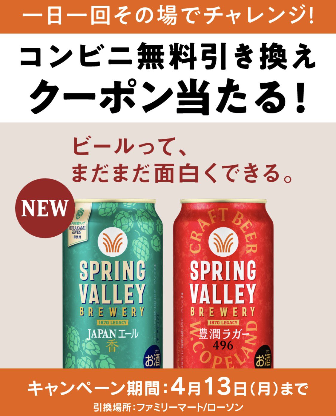 26年4月 スプリングバレーブルワリー コンビニ無料引き換えクーポンが当たる!キャンペーン