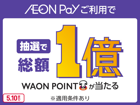 AEON Payの利用金額合計5,000円(税込)を1口として、抽選で1万名に1万ポイントが当たるキャンペーンがはじまりました。