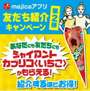 全国のドンキ・ユニー系列店舗で使えるmajicaアプリを登録して「ジャイアントカプリコ(いちご)」が貰えるよ!